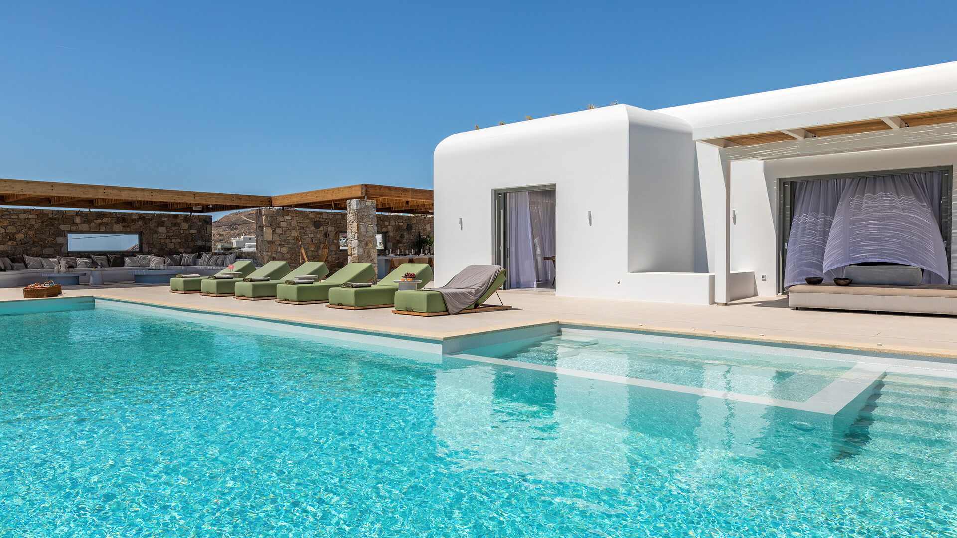 Set within a peaceful pocket of Mykonos, Aitherion is a brand-new bioclimatic stone villa designed for complete privacy and contemporary island living. Elevated to capture wide, uninterrupted views across the Aegean Sea, it offers a serene retreat while remaining within easy reach of beaches and the island’s energy.