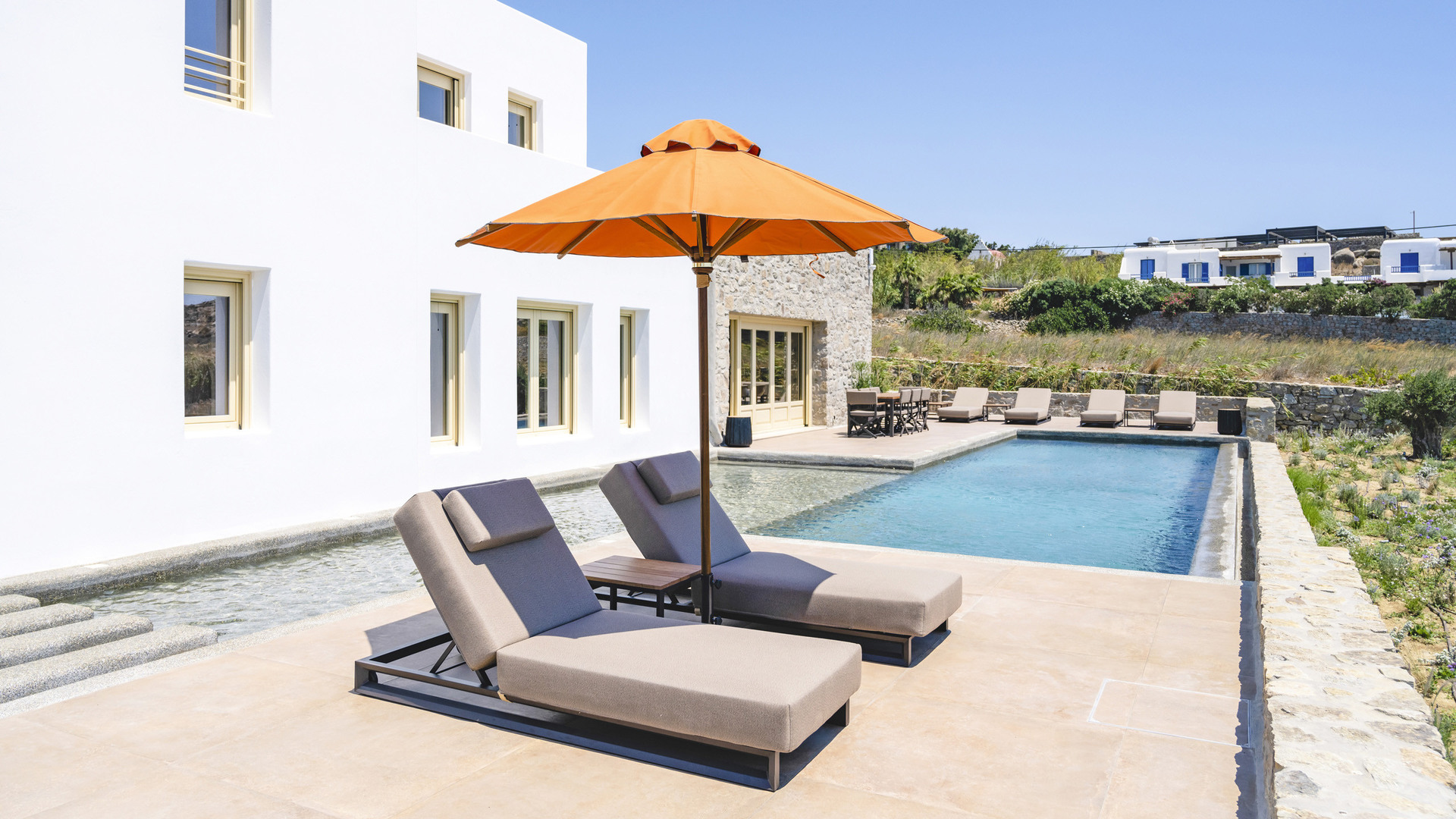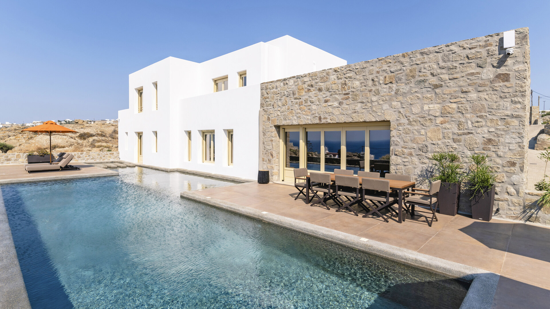 Facing south overlooking Platis Gialos Beach, Villa Lenoir is positioned in Platis Gialos, 3 km from Platis Gialos beach. Its elevated setting ensures open sea views while placing beaches, dining and nightlife within easy reach, combining privacy with convenient access across the southern coast.