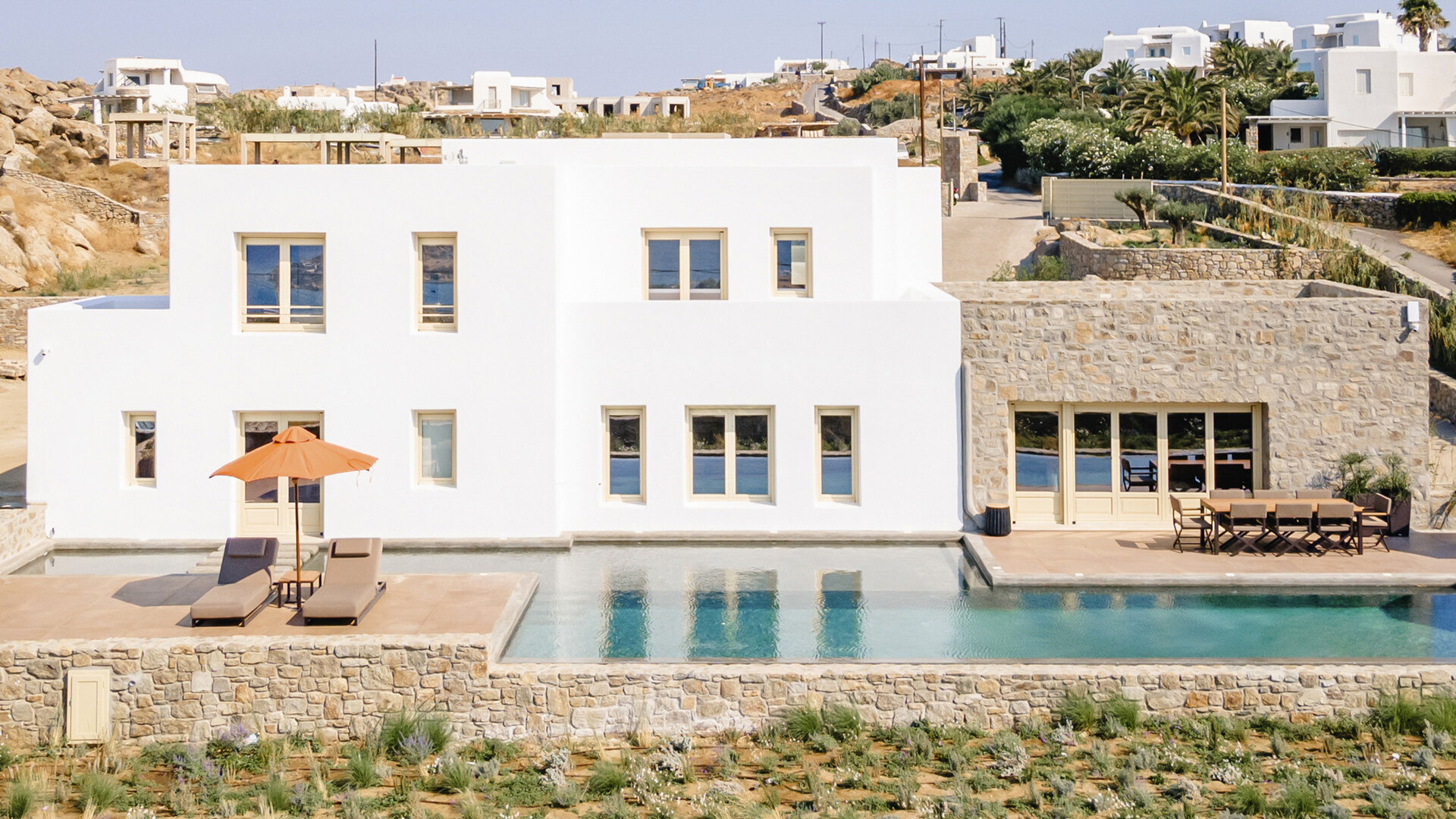 In the Leno area of Mykonos, just moments from Psarou and Platis Gialos, Villa Lenoir enjoys a privileged hillside setting with sweeping sea views and rare privacy. This exceptional property combines a sense of seclusion with swift access to the island’s most fashionable beaches and the energy of Mykonos Town.