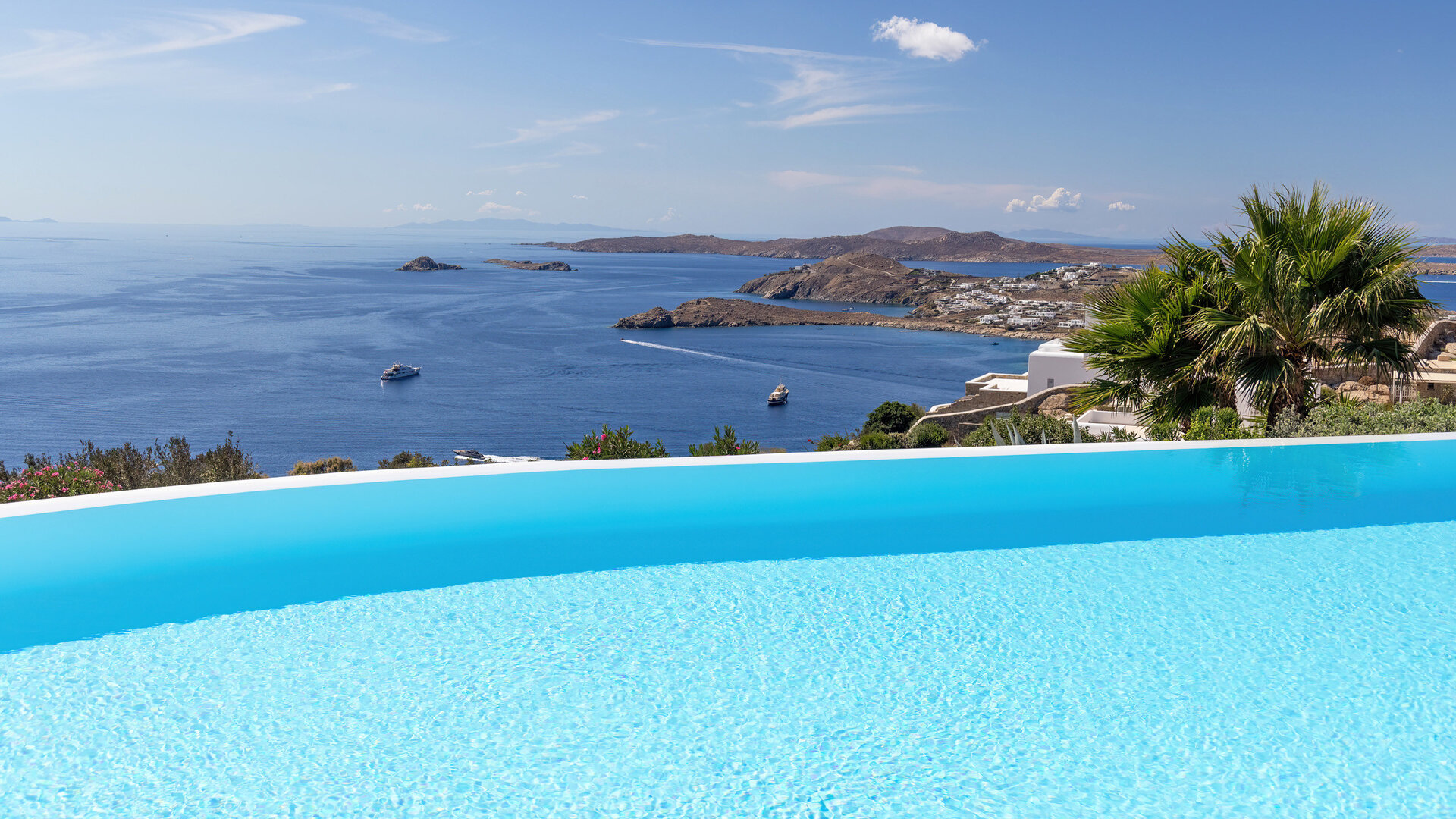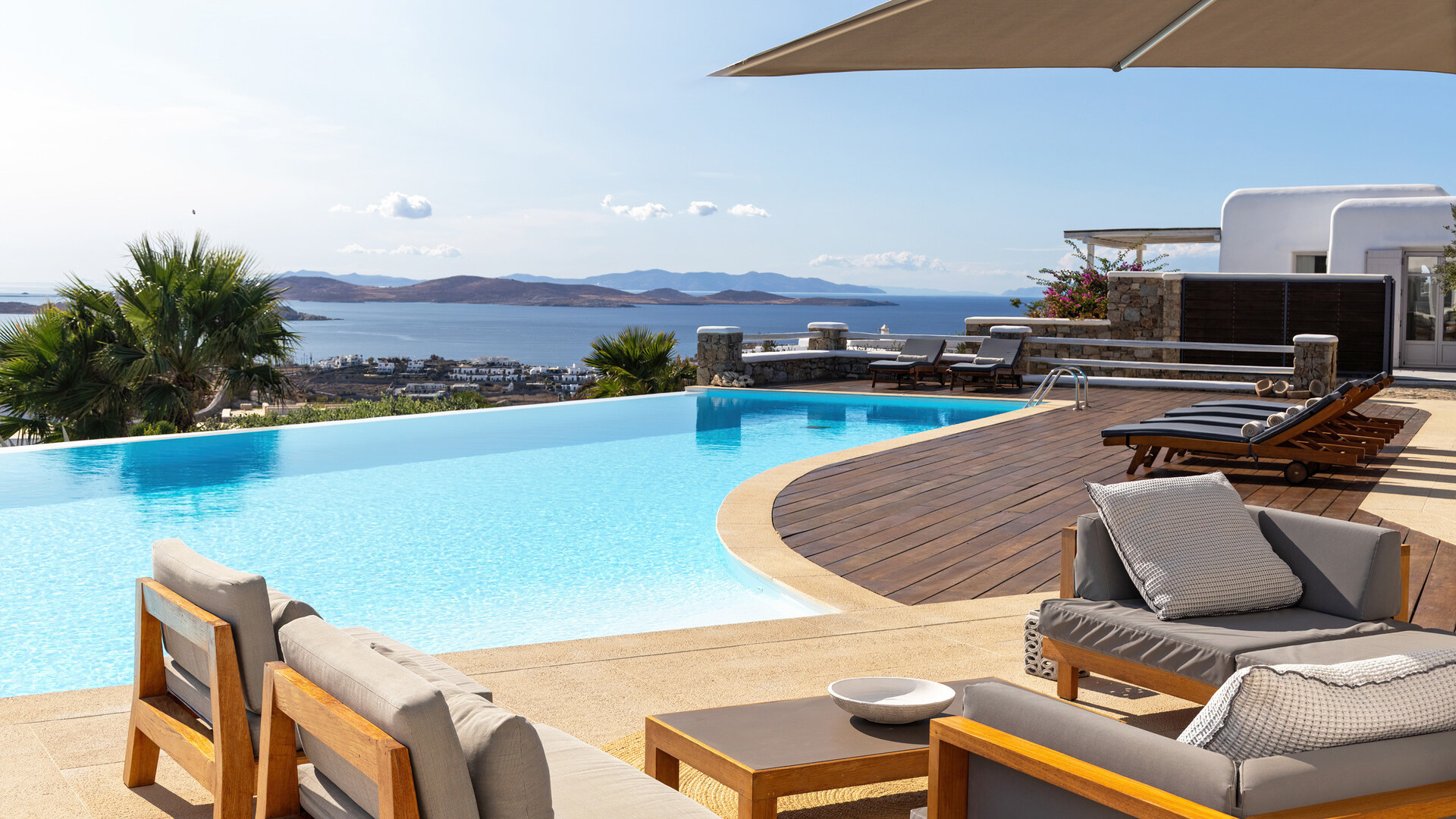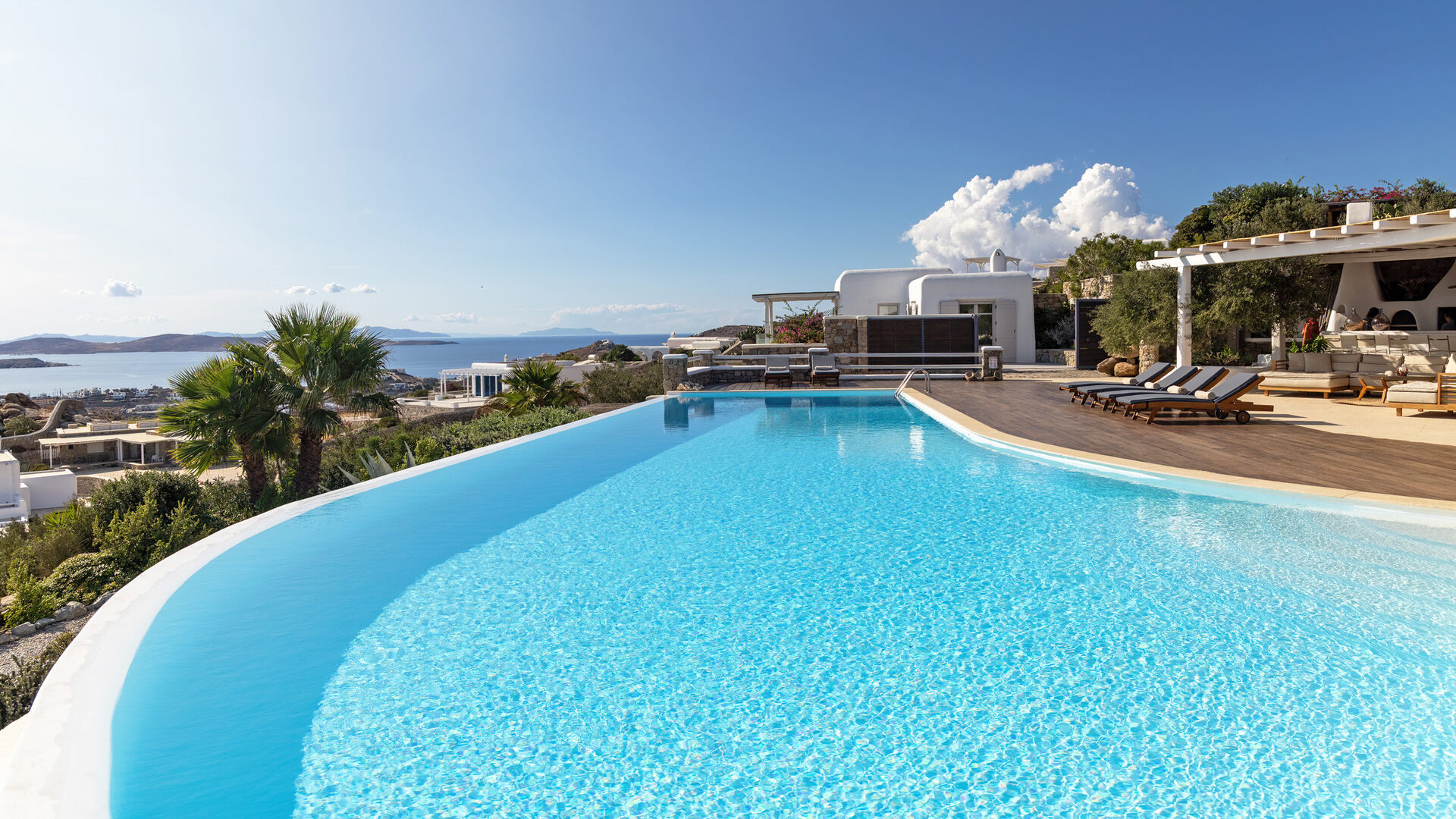 Villa Secret Garden is a fresh addition in Agios Lazaros, combining a prized Mykonos setting with privacy, far-reaching sunset views and easy access to Psarou, Platis Gialos and Mykonos Town. Looking out across the Aegean towards neighbouring islands, it has an immediately polished yet relaxed feel.